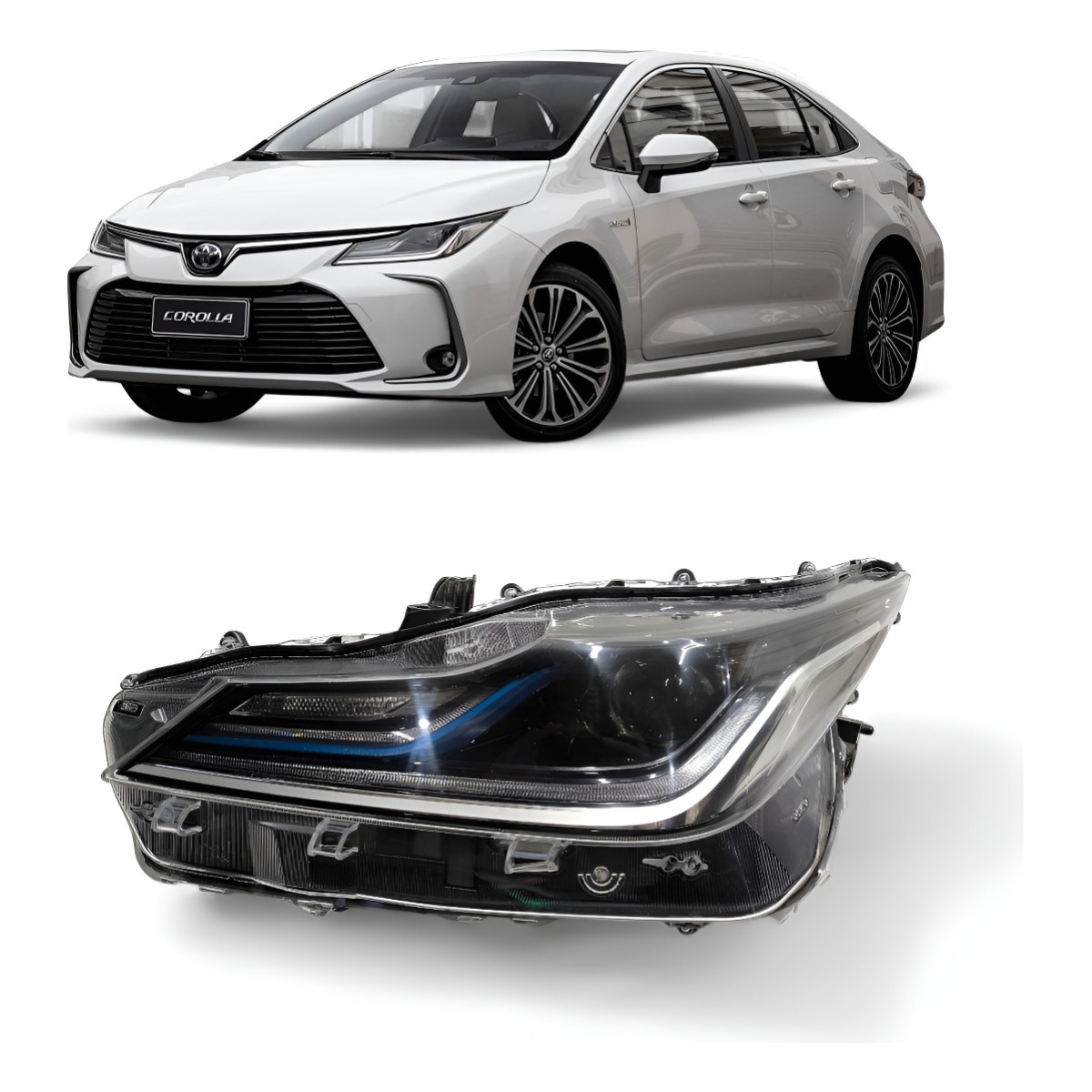 Farol Esquerdo Corolla Híbrido Friso Azul 2020 2021 2022 Led Esquerdo/motorista