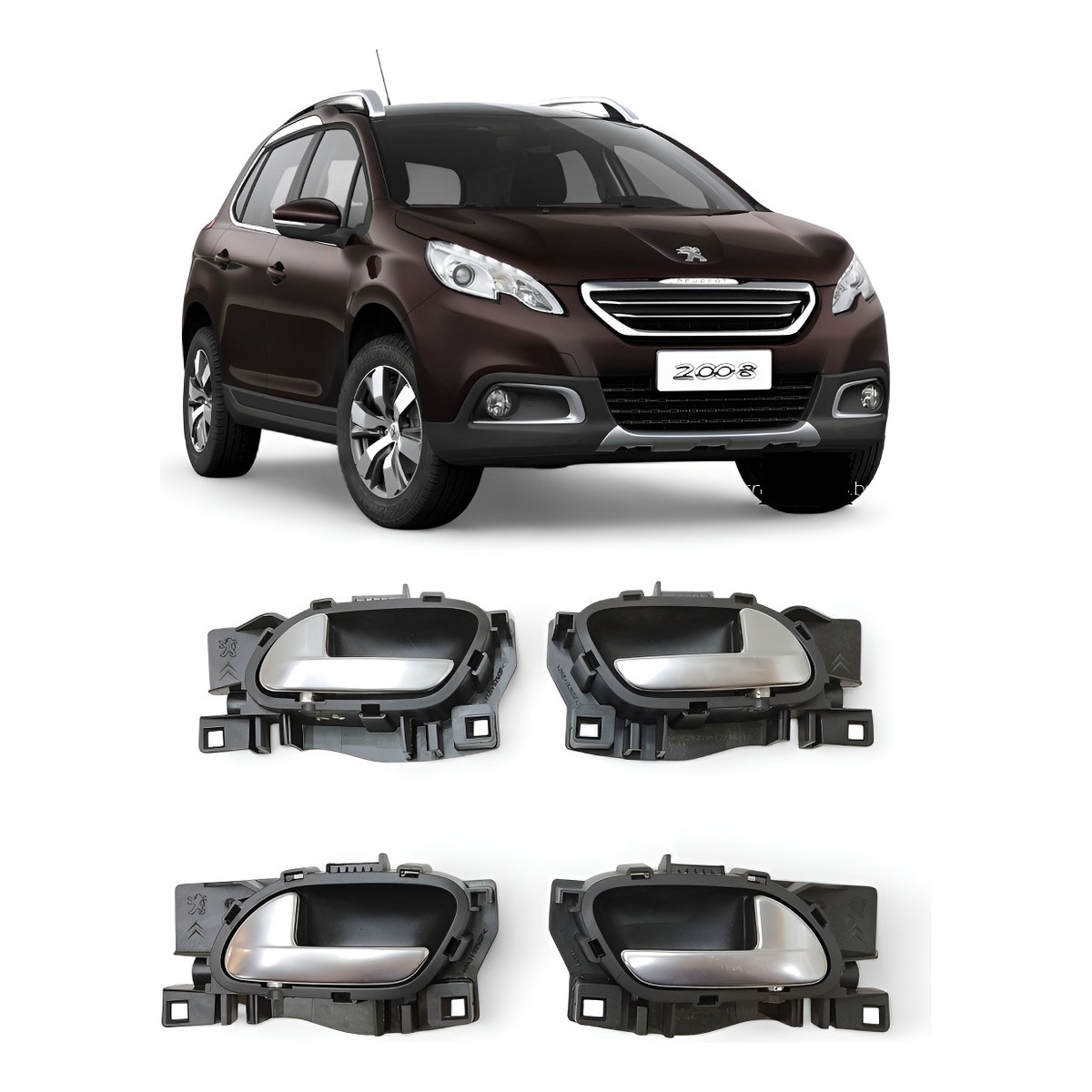 Kit 4 Maçaneta Interna Peugeot 2008 2014 2015 2016 2017 Cinza Dianteira/traseira