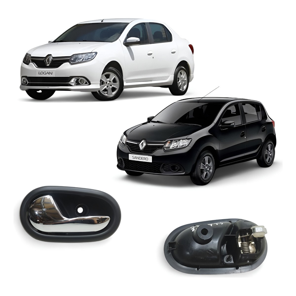 Maçaneta Interna Traseira Esquerda Sandero Logan 2015 A 2018 Cinza